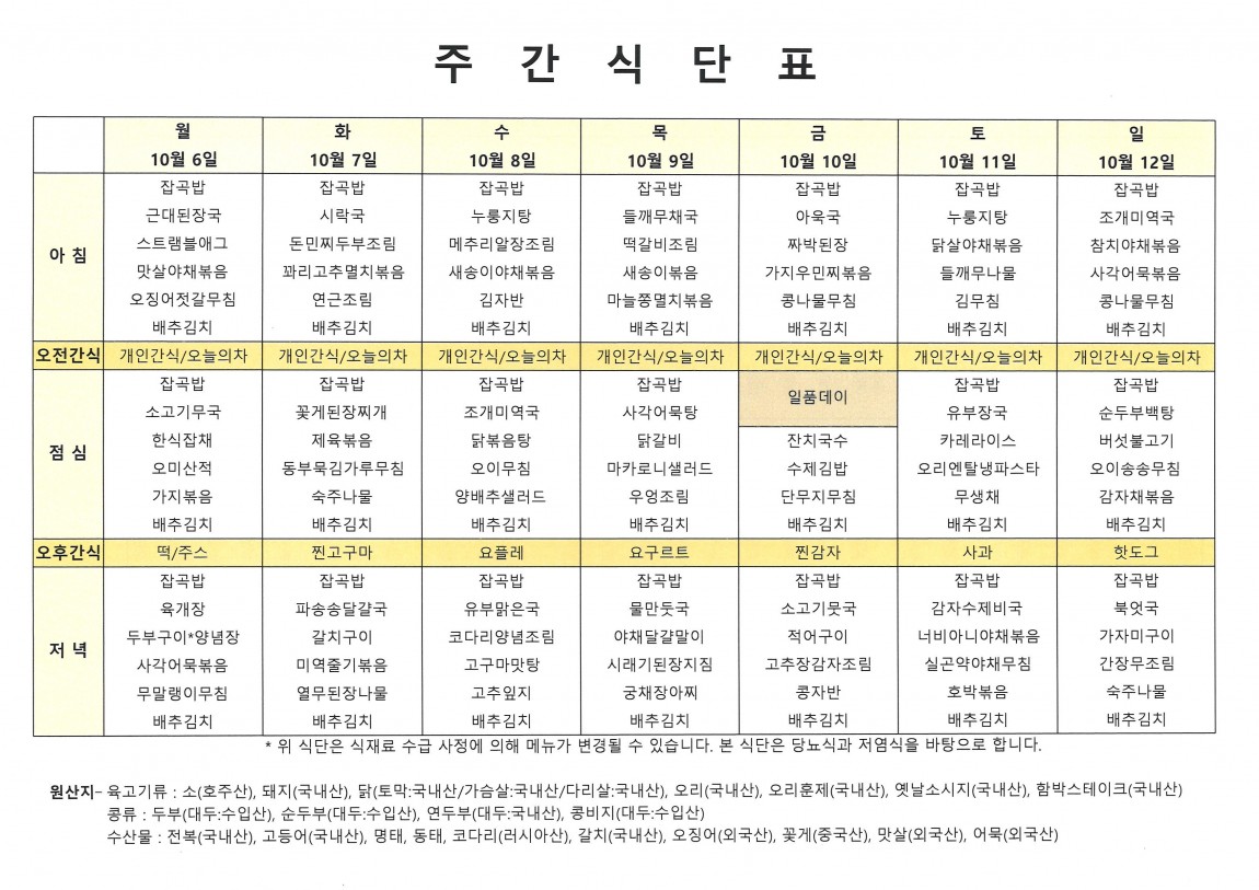 25.10.06~25.10.12 식단표 페이지 정보 작성자 애림실버웰 작성일25-10-02 16:09 조회9회 댓글0건 관련링크 다음글 목록 답변 글쓰기 본문 25.10.06~25.10.12 식단표 댓글목록 등록된 댓글이 없습니다. 다음글 목록 답변 글쓰기
